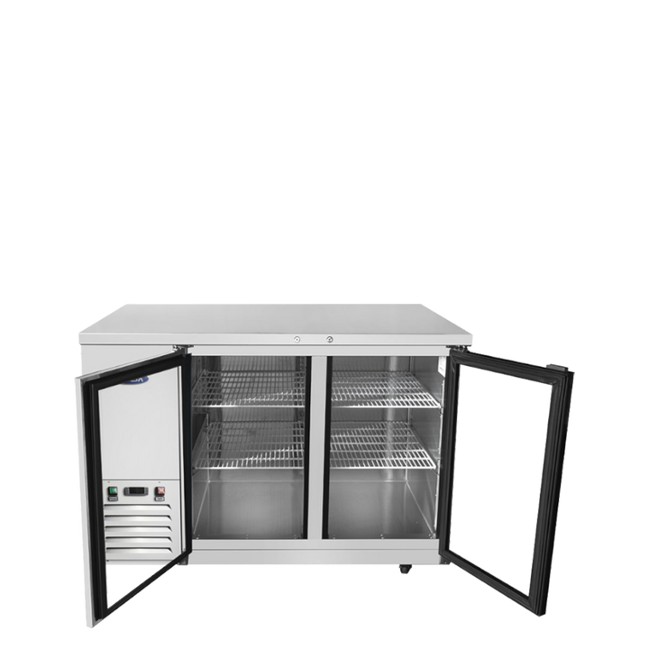 The Atosa SBB59GGRAUS1 Back Bar Cooler is a commercial-grade, refrigerated two-section unit designed for optimal storage in bar and hospitality environments. Featuring a shallow depth of 24-1/2 inches and a width of 57-3/4 inches, this model maximizes space efficiency in compact setups. Its self-contained, side-mounted hydrocarbon R290 refrigeration system provides reliable cooling for up to 15.0 cubic feet of perishables, suitable for medium-volume beverage and ingredient display. Constructed with stainless steel interior and exterior and equipped with locked glass doors, it ensures durability, visibility, and secure access. Digital temperature control enables precise climate management, making it ideal for foodservice operators requiring consistent cold storage in busy venues. The unit’s technical specifications, including 2.3 amps, 115V power cycle, and cable with NEMA 5-15P plug, facilitate straightforward installation in commercial settings.